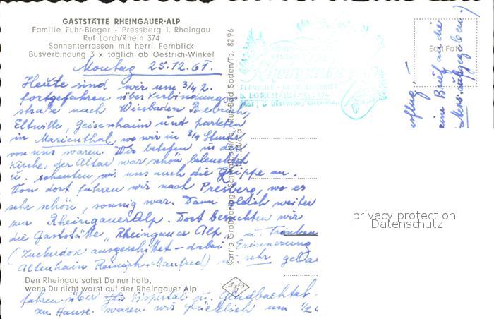 72095515 Pressberg Restaurant Rheingauer Alp postalisch nicht gelaufen Erhaltung siehe scans KatCode: 11110006439010