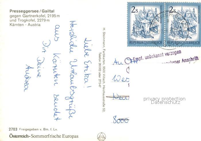 73586965 alte Postkarte Pressegger See Fliegeraufnahme mit Garnerkofel und Trogkofel postalisch gelaufen Erhaltung siehe scans [WerneD78] KatCode: 11390211020201
