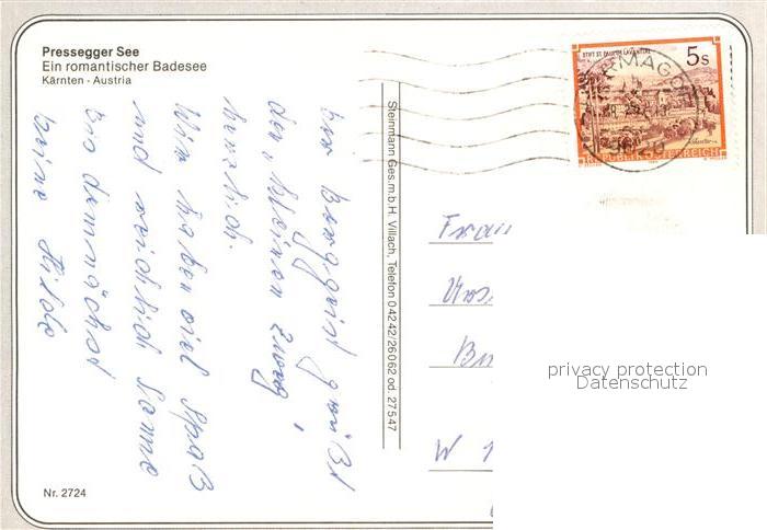 73231734 alte Postkarte Pressegger See Fliegeraufnahme Seepartie Badestell Kirche postalisch gelaufen Erhaltung siehe scans [LiesaD40] KatCode: 11390211020201