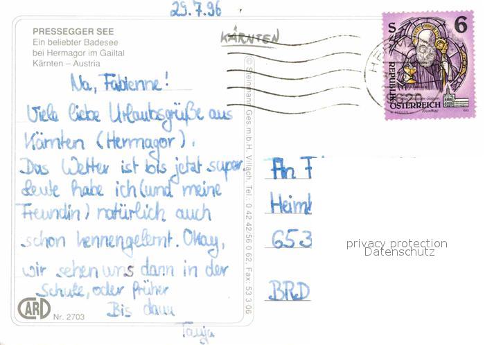 72759976 alte Postkarte Pressegger See Fliegeraufnahmen Badespass Rutsche postalisch gelaufen Erhaltung siehe scans [WerneD78] KatCode: 11390211020201