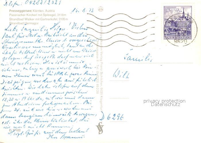 73196674 alte Postkarte Pressegger See Passriacher Kircherl Spitzegel Walker Gartnerkofel postalisch gelaufen Erhaltung siehe scans [NatalD47] KatCode: 11390211020201