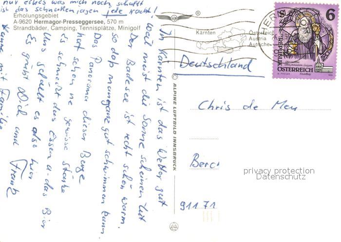 73588358 alte Postkarte Pressegger See Strandbaeder Camping Tennisplaetze Minigolf Fliegeraufnahme postalisch gelaufen Erhaltung siehe scans [WerneD78] KatCode: 11390211020201