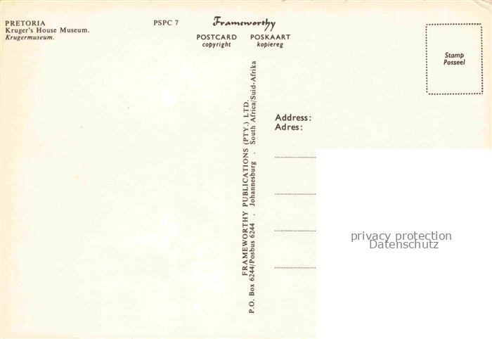74013949 Pretoria Krugers House Museum postalisch nicht gelaufen Erhaltung siehe scans [WerneD78] KatCode: 18460
