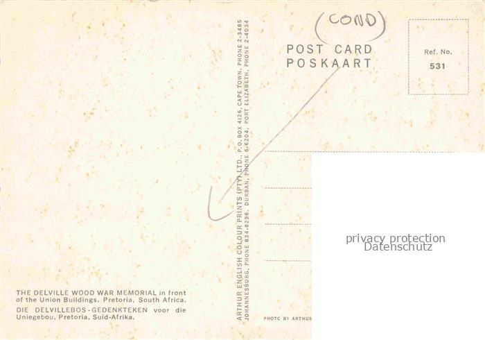 74012398 Pretoria The Delville Wood War Memorial postalisch nicht gelaufen Erhaltung siehe scans [WerneD78] KatCode: 18460