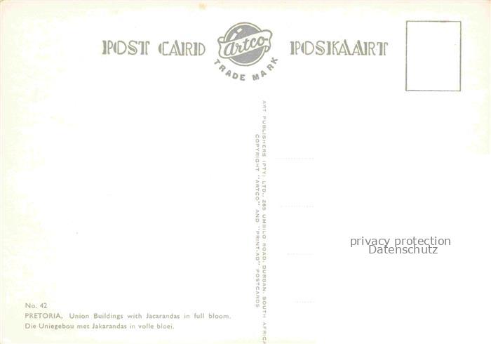 74013952 Pretoria Union Buildings with Jacrandas in full bloom postalisch nicht gelaufen Erhaltung siehe scans [WerneD78] KatCode: 18460