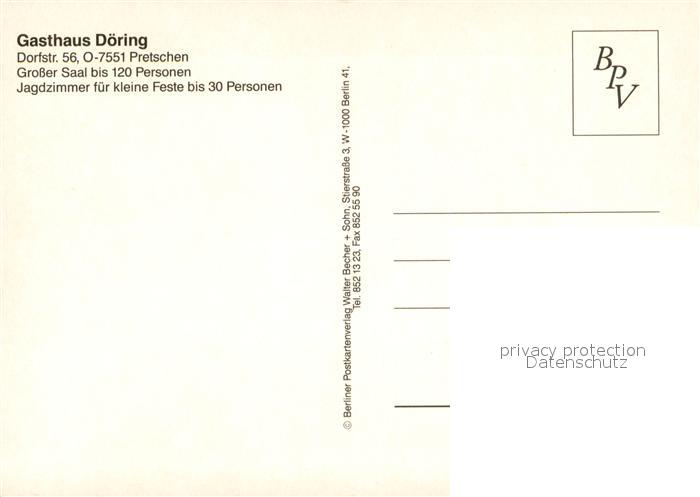73659381 Pretschen Gasthaus D?ring Spreewald postalisch nicht gelaufen Erhaltung siehe scans [LiesaD40] KatCode: 11110012061329