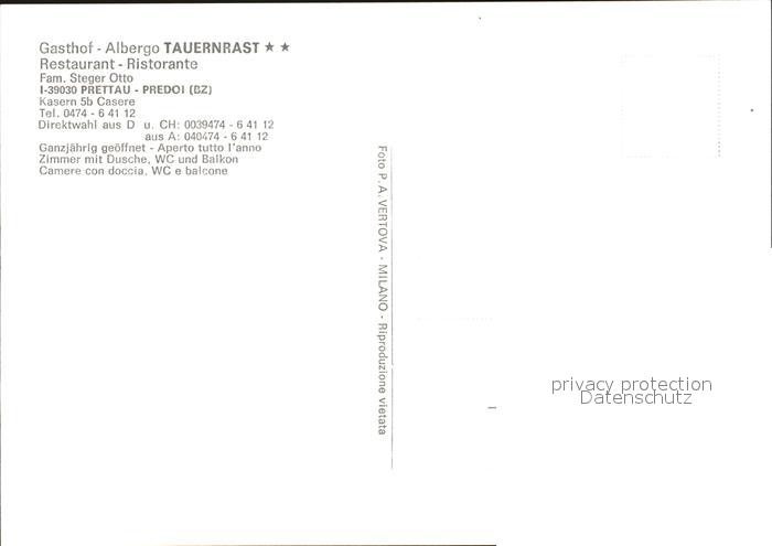 Prettau Gasthaus Albergo Tauernrast postalisch nicht gelaufen Erhaltung siehe scans