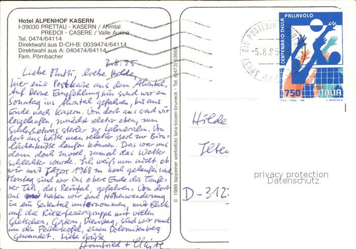 old postcard Prettau Hotel Alpenhof Kasern postalisch gelaufen Erhaltung siehe scans