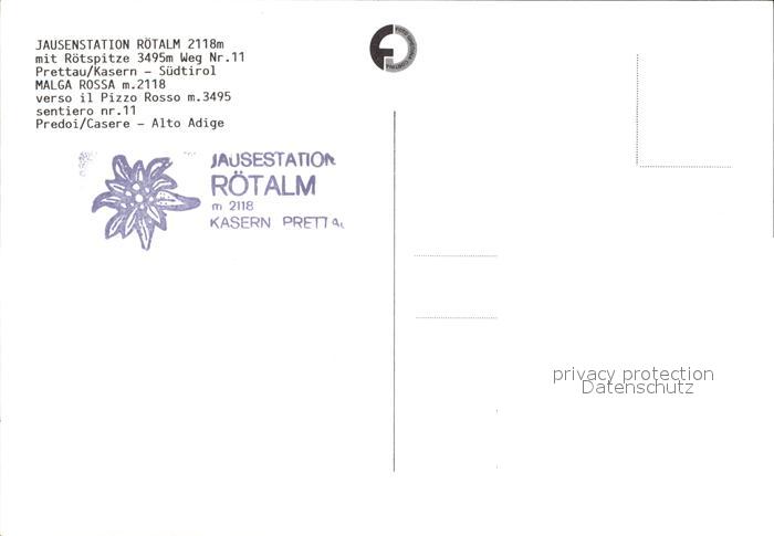 Prettau Jausenstation Roetalm mit Roetspitze Malga Rossa postalisch nicht gelaufen Erhaltung siehe scans
