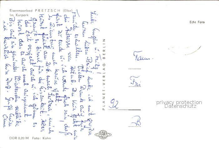 72377088 alte Postkarte Pretzsch Elbe Eisenmoorbad Kurpark postalisch gelaufen Erhaltung siehe scans KatCode: 11110015091255