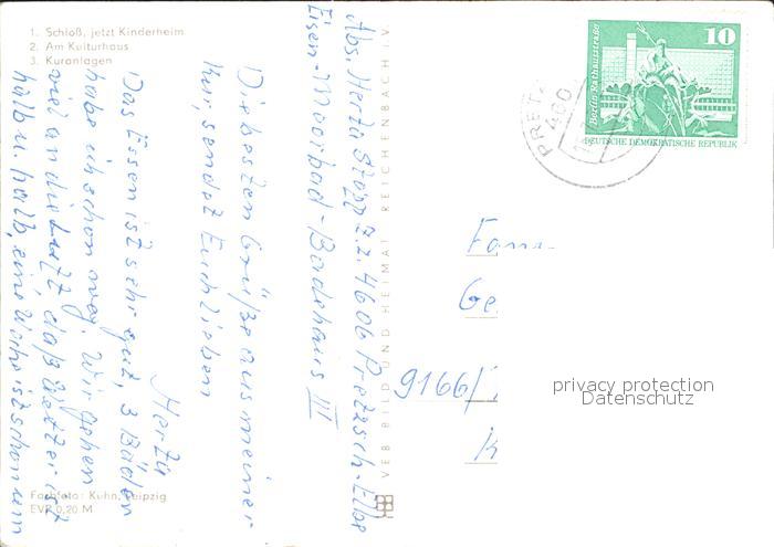 72382821 alte Postkarte Pretzsch Elbe Eisenmoorbad Schloss jetzt Kinderheim Kulturhaus Kuranlagen postalisch gelaufen Erhaltung siehe scans KatCode: 11110015091255