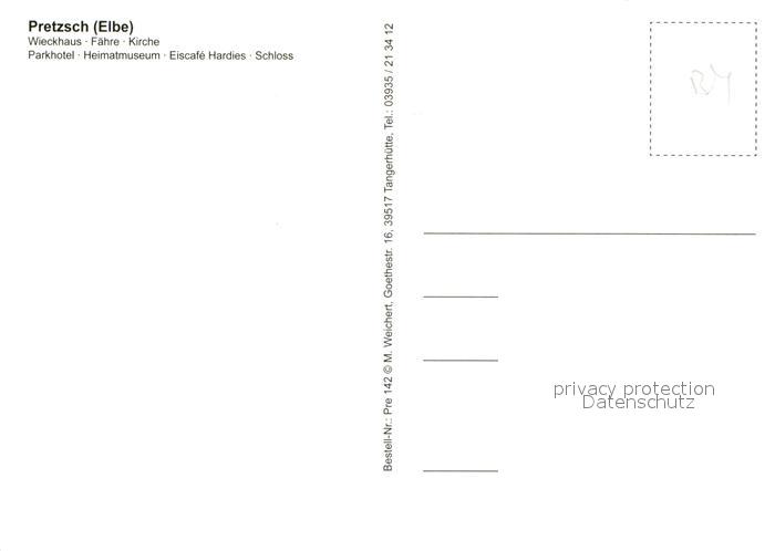 73180411 Pretzsch Elbe Wieckhaus Faehre Kirche Parkhotel postalisch nicht gelaufen Erhaltung siehe scans [NatalD47] KatCode: 11110015091255
