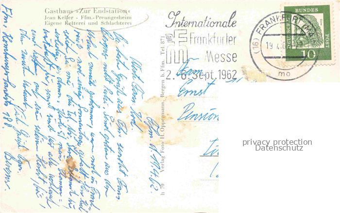 74116844 alte Postkarte Preungesheim FRANKFURT MAIN Hessen Gasthaus zur Endstation Gastraum postalisch gelaufen Erhaltung siehe scans [FriedD77] KatCode: 11110006412000