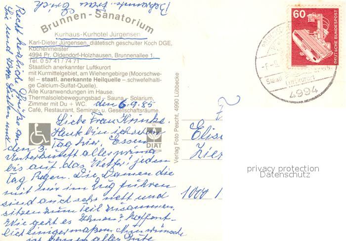 73039463 alte Postkarte Preussisch Oldendorf Kurhaus Kurhotel Juergensen Holzhausen postalisch gelaufen Erhaltung siehe scans [KathaD81] KatCode: 11110005770036