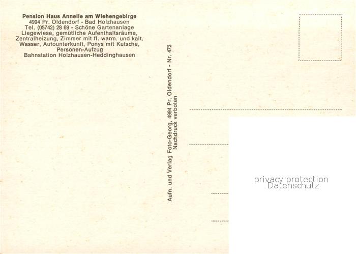 73202188 Preussisch Oldendorf Pension Haus Annelie am Wiehengebirge postalisch nicht gelaufen Erhaltung siehe scans [FriedD77] KatCode: 11110005770036