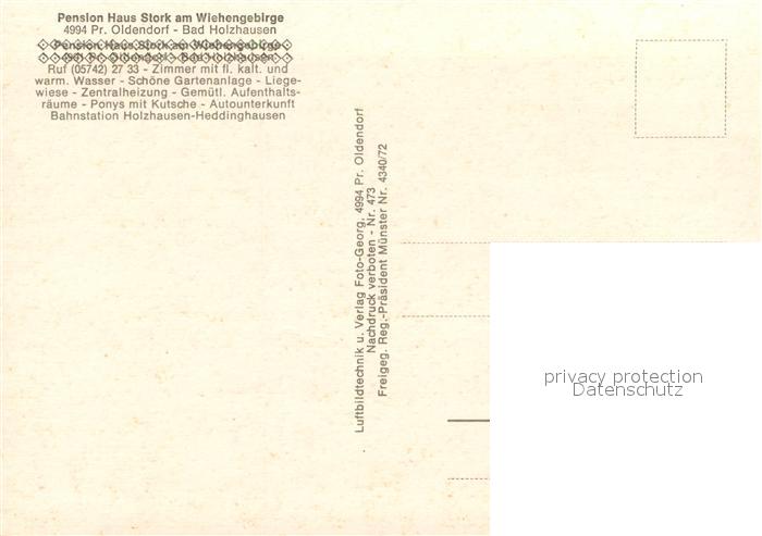 73730903 Preussisch Oldendorf Pension Haus Stork am Wiehengebirge Bad Holzhausen postalisch nicht gelaufen Erhaltung siehe scans [WerneD78] KatCode: 11110005770036