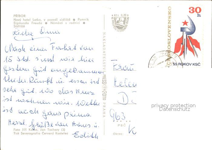old postcard Pribor Freiberg Maehren Novy hotel Letka postalisch gelaufen Erhaltung siehe scans