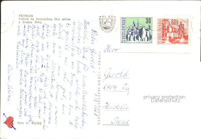 old postcard Pribram Pohled na historickou cast mesta a Svatou Horu postalisch gelaufen