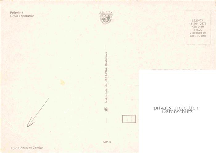 74021038 Pribylina Slovakia Hotel Esperanto postalisch nicht gelaufen Erhaltung siehe scans [FriedD77] KatCode: 11490