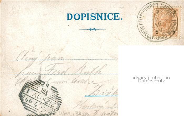 33548198 old postcard Pribyslav Panorama Schloss Rathaus Hotel postalisch gelaufen Erhaltung siehe scans [KathaD81] KatCode: 11520