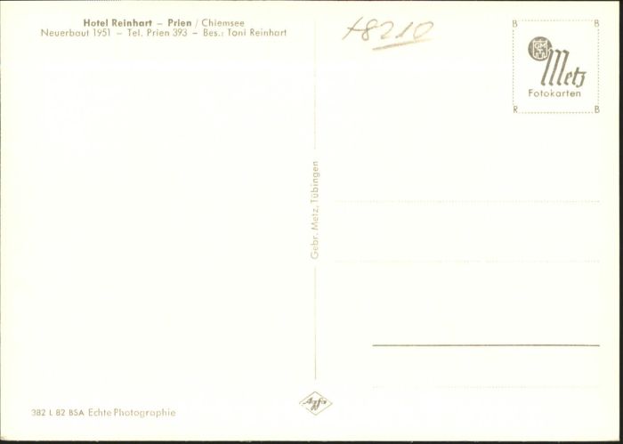 40774666 Prien Chiemsee Bayern Hotel Reinhart postalisch nicht gelaufen Alte Ansichtskarte Postkarte Katcode 11110009187162