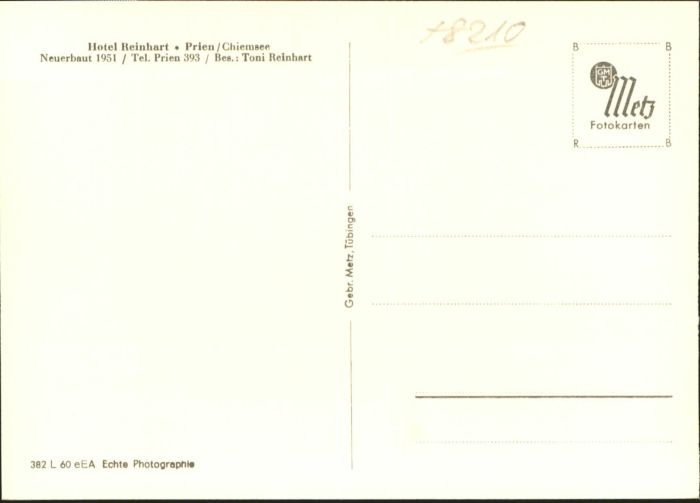 40774667 Prien Chiemsee Bayern Hotel Reinhart postalisch nicht gelaufen Alte Ansichtskarte Postkarte Katcode 11110009187162