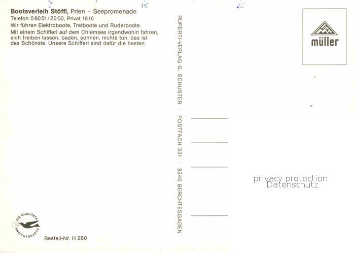 72888102 Prien Chiemsee Bootsverleih Stoeffl postalisch nicht gelaufen Erhaltung siehe scans [AndreD76] KatCode: 11110009187162