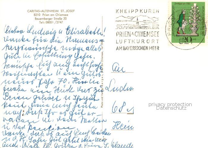 73785665 alte Postkarte Prien Chiemsee Caritas Altenheim St Josef postalisch gelaufen Erhaltung siehe scans [WerneD78] KatCode: 11110009187162