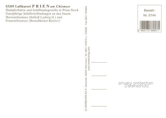 73173515 Prien Chiemsee Dampfer Kirche Eisenbahn postalisch nicht gelaufen Erhaltung siehe scans [KathaD81] KatCode: 11110009187162