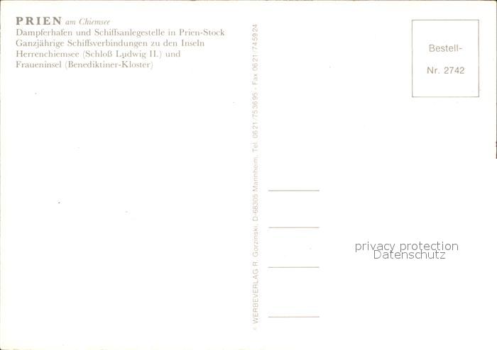 72041247 Prien Chiemsee Dampferhafen Schiffanlegestelle Prien Stock postalisch nicht gelaufen Erhaltung siehe scans KatCode: 11110009187162