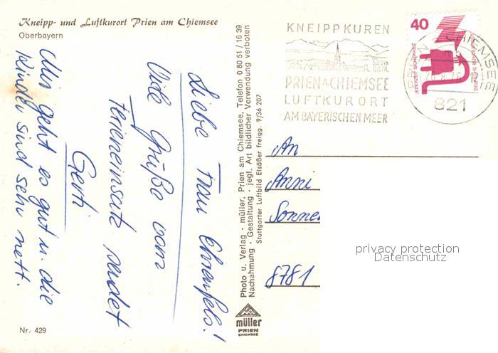 72829429 alte Postkarte Prien Chiemsee Fliegeraufnahme Koenigsschloss Hochstaufen Hochfelln postalisch gelaufen Erhaltung siehe scans [NatalD47] KatCode: 11110009187162