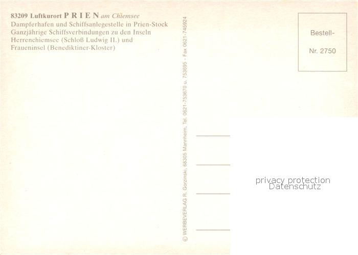 73269529 Prien Chiemsee Fliegeraufnahme mit Dampferhafen und Schiffsanlegestelle postalisch nicht gelaufen Erhaltung siehe scans [WerneD78] KatCode: 11110009187162
