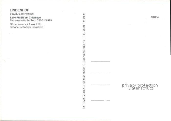 72139588 Prien Chiemsee Gasthof Lindenhof Gastraeume Kirche postalisch nicht gelaufen Erhaltung siehe scans KatCode: 11110009187162