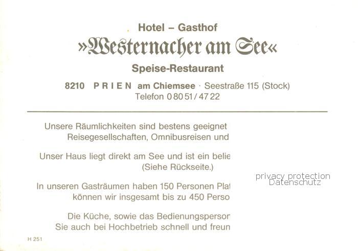 73812784 Prien Chiemsee Hotel Gasthof Westernacher am See postalisch nicht gelaufen Erhaltung siehe scans [WerneD78] KatCode: 11110009187162