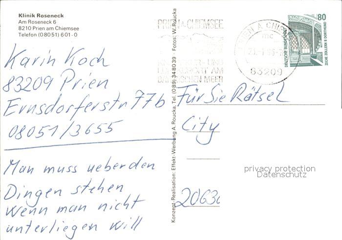 72412430 alte Postkarte Prien Chiemsee Klinik Roseneck Schwimmhalle postalisch gelaufen Erhaltung siehe scans KatCode: 11110009187162