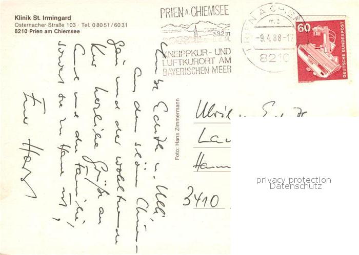 73005136 alte Postkarte Prien Chiemsee Klinik St Irmingard Details postalisch gelaufen Erhaltung siehe scans [WerneD78] KatCode: 11110009187162