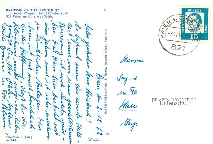 73013497 alte Postkarte Prien Chiemsee Kneipp-Kur-Hotel Kronprinz postalisch gelaufen Erhaltung siehe scans [NatalD47] KatCode: 11110009187162