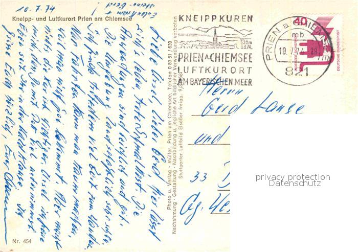 72783313 alte Postkarte Prien Chiemsee Kneipp Luftkurort Fliegeraufnahme postalisch gelaufen Erhaltung siehe scans [FriedD77] KatCode: 11110009187162