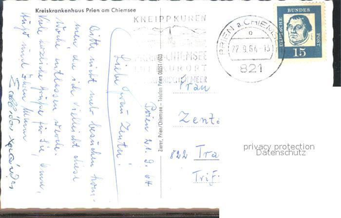 72135549 alte Postkarte Prien Chiemsee Kreiskrankenhaus postalisch gelaufen Erhaltung siehe scans KatCode: 11110009187162