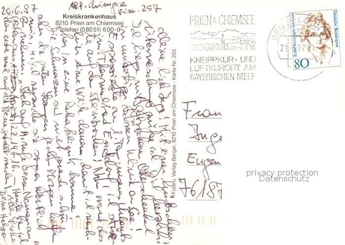 73332138 alte Postkarte Prien Chiemsee Kreiskrankenhaus postalisch gelaufen Erhaltung siehe scans [LiesaD40] KatCode: 11110009187162