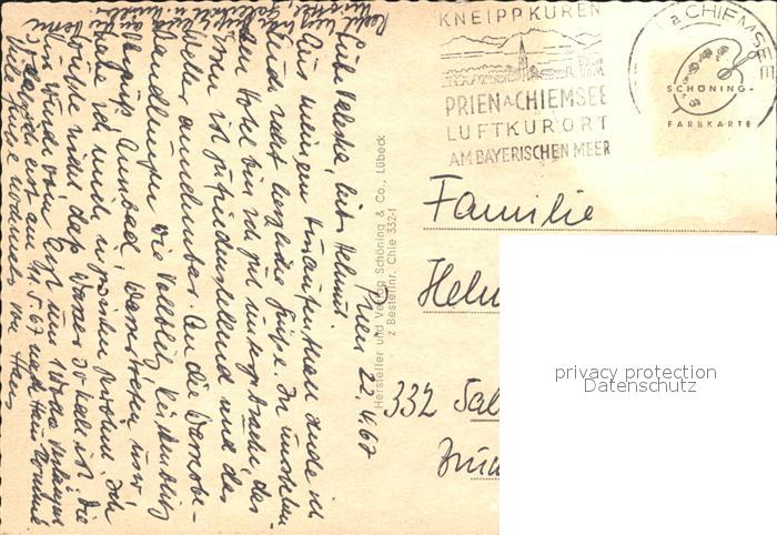 72071220 alte Postkarte Prien Chiemsee Kurhotel Kronprinz postalisch gelaufen Erhaltung siehe scans KatCode: 11110009187162