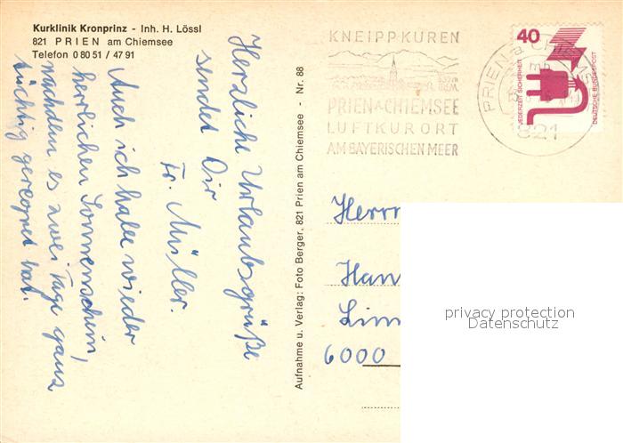 73071454 alte Postkarte Prien Chiemsee Kurklinik Kronprinz postalisch gelaufen Erhaltung siehe scans [NatalD47] KatCode: 11110009187162