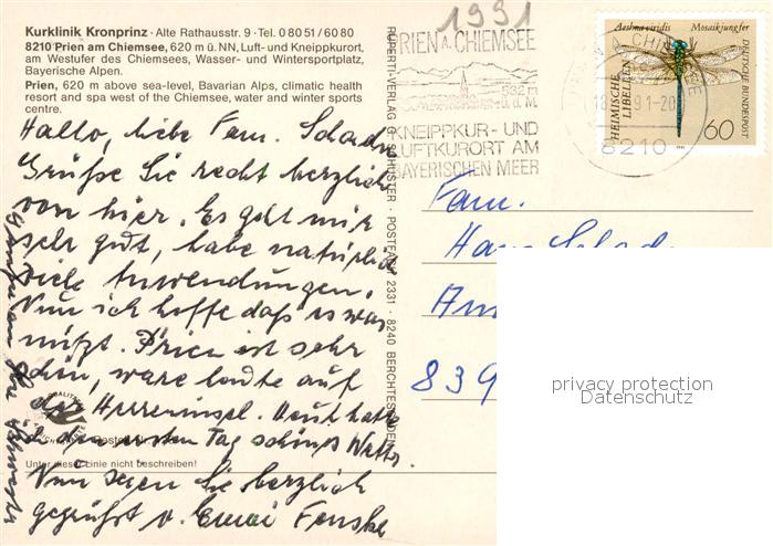 73039832 alte Postkarte Prien Chiemsee Kurklinik Kronprinz postalisch gelaufen Erhaltung siehe scans [WerneD78] KatCode: 11110009187162