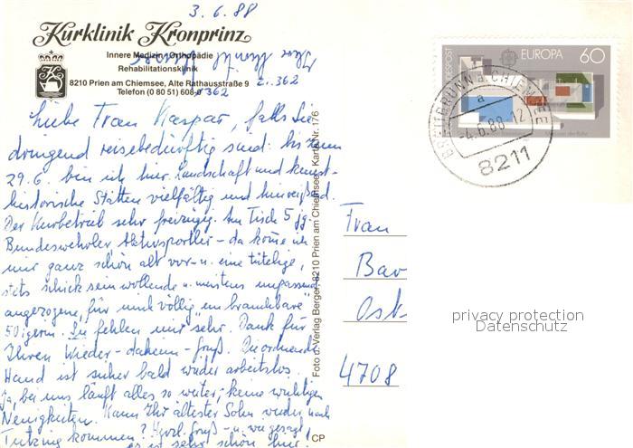 72966802 alte Postkarte Prien Chiemsee Kurklinik Kronprinz postalisch gelaufen Erhaltung siehe scans [LiesaD40] KatCode: 11110009187162