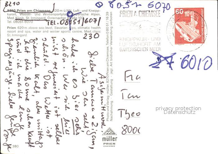 72296411 alte Postkarte Prien Chiemsee Med Klinik St Irmingard Kampenwand Chiemgauer Alpen postalisch gelaufen Erhaltung siehe scans KatCode: 11110009187162