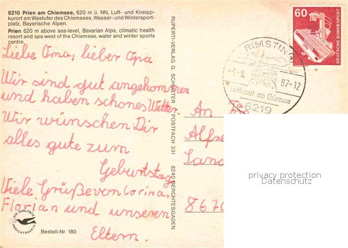 72885972 alte Postkarte Prien Chiemsee Ortspartie an der Kirche Maibaum postalisch gelaufen Erhaltung siehe scans [FriedD77] KatCode: 11110009187162