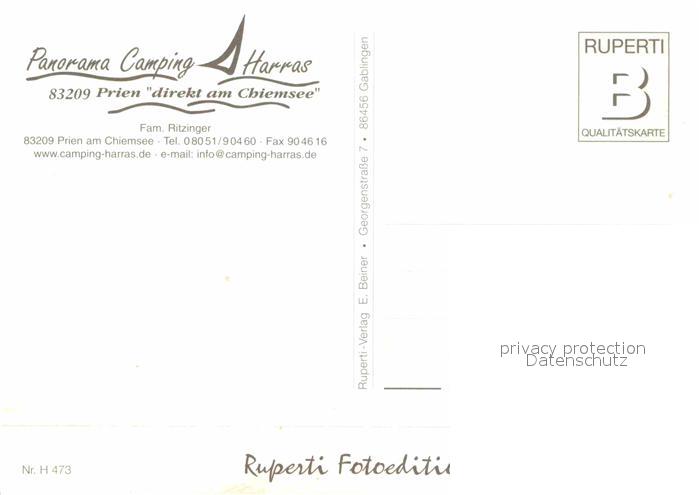 72902953 Prien Chiemsee Panorama Camping Harras Fliegeraufnahme postalisch nicht gelaufen Erhaltung siehe scans [FriedD77] KatCode: 11110009187162