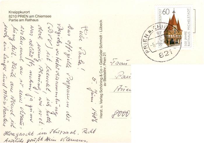73879208 alte Postkarte Prien Chiemsee Partie am Rathaus postalisch gelaufen Erhaltung siehe scans [WerneD78] KatCode: 11110009187162