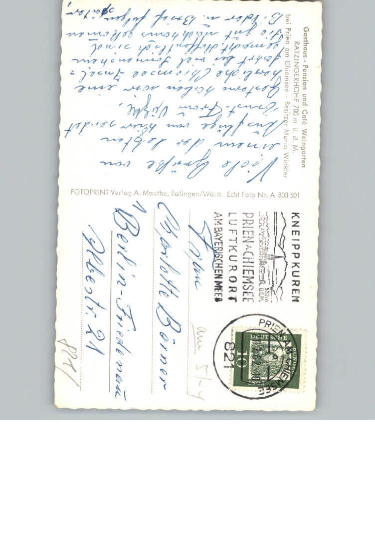 31158319 Prien Chiemsee Pension und Cafe Weingarte postalisch nicht gelaufen KatCode: 11110009187162