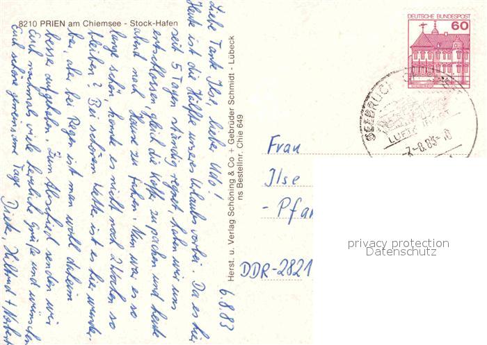 72665390 alte Postkarte Prien Chiemsee Stock Hafen postalisch gelaufen Erhaltung siehe scans [WerneD78] KatCode: 11110009187162